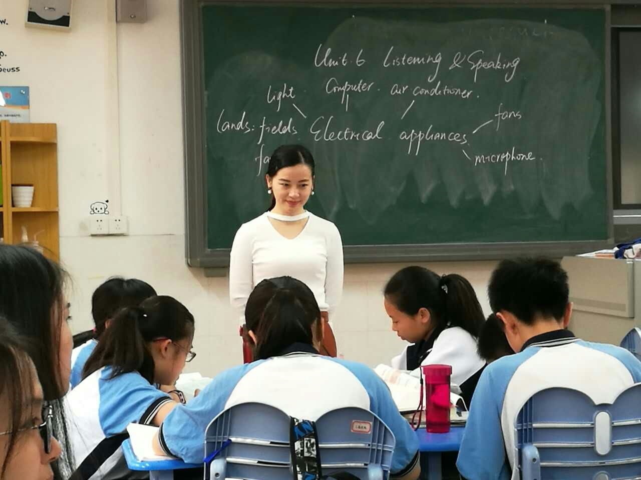 (二)置身学校第一印象是环境幽雅,学校周围的建筑不是很密集,因此也能够让学生们在一个相对安静整洁的环境学习。老师们采取全英的课堂上英语课,学生们上课用的是学校编辑的特色教材,坐在互动式的座位(综英课堂座位摆放),老师准备了课堂所需的练习的handout发给学生。