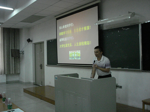 在开学典礼的最后,熊涛老师进行了英语教育专业介绍,他以“IQ与EQ并行”的话题引入讲解大学四年要如何度过,然后详细介绍了英语教育专业以及课程的设置,其中包括学院办学特色、培养目标等。熊涛老师指出,广外的英语教育专业是一门让人成为“好老师”的专业。另外他还介绍了丰富多彩的校园生活和我们学院的品牌活动比赛等。最后他通过介绍英语教育专业的高度社会认可度寄予2014级新生们奋发前进的希望。