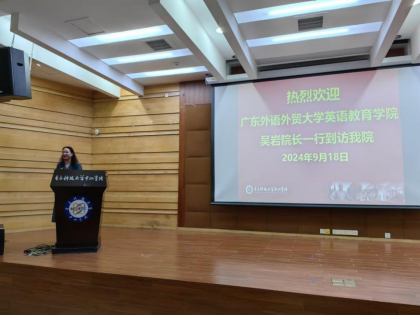 为促进英语教育学院2025年国际项目招生工作的顺利开展,9月18日下午,英语教育学院赴电子科技大学中山学院开展国际项目招生宣讲会。电子科技大学中山学院外国语学院副院长李天刚,广东外语外贸大学英语教育学院院长吴岩,副院长兼学院国际项目中心负责人张倩,国际项目中心秘书吴世傲参加宣讲会。宣讲会由张倩主讲。