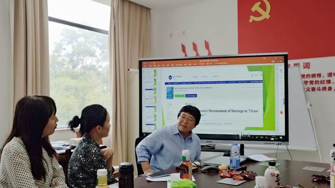 在互动环节,徐教授分享了其研究心得:通过翻译狄金森诗歌培养文字敏感度,在翻译实践中深化对诗歌内涵的理解;同时保持与国际学术界的交流对话,确保研究的前沿性。活动尾声,徐教授还展示了人工智能生成的诗歌音乐,让与会师生切身感受到传统文学研究与现代技术的融合可能,启发了大家将人工智能应用于教学科研的新思路。