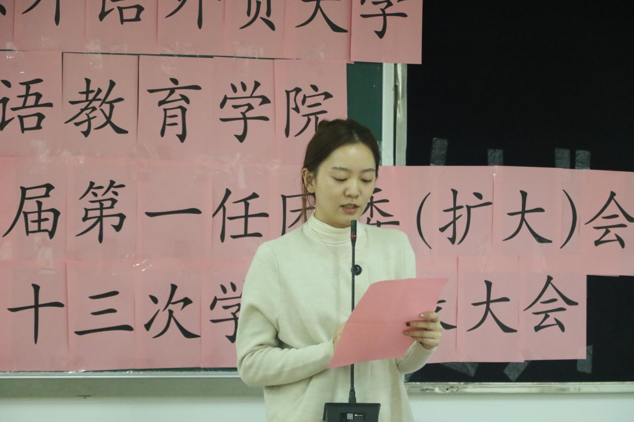 伴随着团歌奏响,英语教育学院第八届第一任团委(扩大)会议、第十三次学生代表大会圆满落下帷幕。英语教育学院第八届第二任团委、第十三届第一任学生会将迎接新使命,开启新征程。