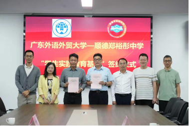 2025年11月6日下午,广东外语外贸大学英语教育学院与顺德郑裕彤中学“本科生校外教育实践基地”签约仪式在郑裕彤中学顺利举行。郑裕彤中学党委书记张志勇、副校长周琼及广外英语教育学院副院长刘亮星教授、师范系主任谢剑萍教授等出席签约仪式。