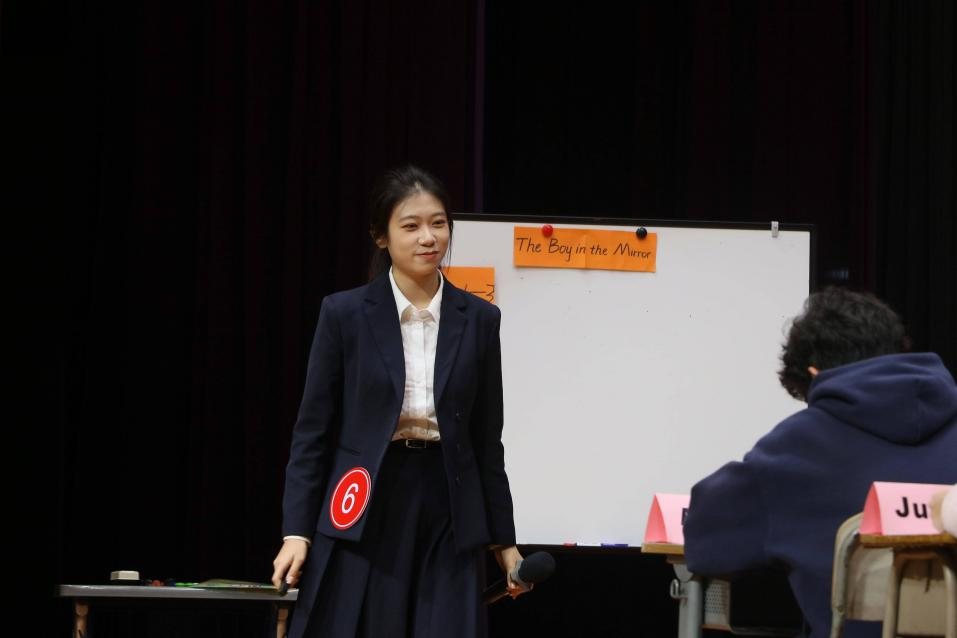 选手郑晓潼以《The boy in the mirror》为题展开教学,带领学生学习文章所蕴含的多元化思考和人物独特思想的特点。在教学中,她梳理文章脉络,提取重点,鼓励学生换位思考人物心理,将写作结构技能运用于实践,并积极对学生的发言给予反馈。整个教学层次清晰,目的明确,为学生树立了逻辑完整的结构意识,建立了丰富多元的价值理念。