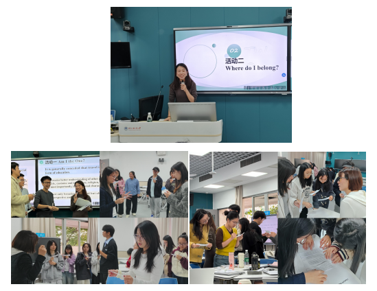 紧接着,围绕阅读课程设计,工作坊的老师们向大家介绍并示范了两个课堂活动,分别是“Am I the one?”和“Where do I belong?”,并带领同学们进行活动体验。通过切身体验有趣的课堂活动,同学们也将语篇意识融入到了自己的课堂设计理念中。