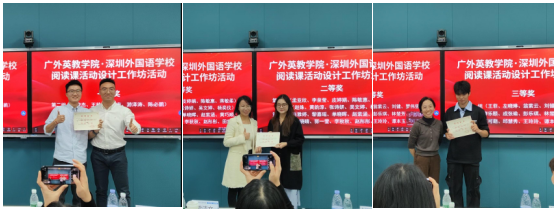 最后,李惠胤教授主持颁奖环节,分别邀请曾瑜璘老师,禤倩映老师以及华斌老师为获奖的小组颁发奖状。本次工作坊为学生搭建了高质量的教学实践平台,不仅深化了学生对阅读教学中语篇逻辑的理解,更通过实践操作和专家指导,提升了学生的教学设计能力。学院将继续推进此类活动,为学生提供更多实践机会,助力培养具有创新精神和实践能力的优秀英语教育人才。