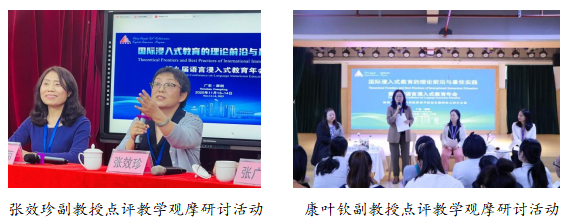年会共设四个教学观摩研讨分会场和两大平行论坛,均围绕英语浸入式教育在初中、小学和幼儿园的课堂实践展开。与会教师和专家通过理论探讨、案例展示、课堂实操和实践感悟,展示了英语浸入式教育在不同地区初小幼阶段的实施路径。其中,康叶钦副教授担任龙华区福安雅园幼儿园会场的会议主持和点评专家,张效珍副教授担任大会总结环节的会议主持人和点评专家。