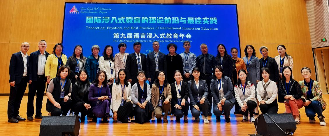 2025年11月13-14日,第九届语言浸入式教育年会在深圳市龙华区清泉外国语学校召开。本届年会由华南师范大学教育科学学院、中国—加拿大—美国英语浸入式教学(CCUEI)课题组、语言浸入式教育与教师专业发展委员会联合主办,深圳市龙华区教育科学研究院、深圳市龙华区清泉外国语学校、深圳市碧澜外国语小学、深圳市龙华区教科院幼教集团、CCUEI华南课题组承办,广东外语外贸大学英语教育学院协办。年会汇聚了国内外专家学者与一线教育工作者,共同探讨语言浸入式教育的前沿动态与实践路径。广东外语外贸大学英语教育学院院长吴岩教授带队,张效珍副教授、康叶钦副教授与研究生陈敏惠、白英翘参加会议。