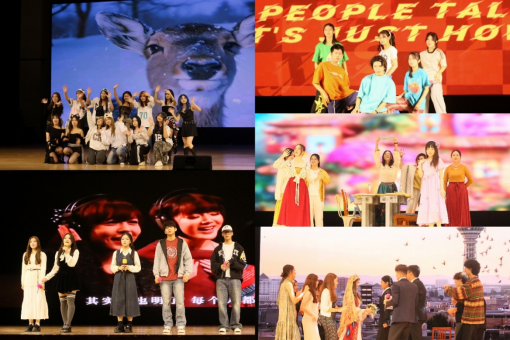 短暂的游戏过后,精彩的节目继续上演。英师2501班的相声节目《学电台》以风趣的语言、娴熟流畅的快板为观众带来欢声笑语。广外霏阳吉协通过深情演绎《Love Story》将观众带入了一段动人的音乐叙事,感染了全场观众。校舞队作品《溯·跃》通过刚柔并济的肢体语言与行云流水的队形变换,呈现出一场极具美感与力量的视觉盛宴。英教院歌队用温润深情的音色真挚演绎了《Dream in Tune》,为听众带来温暖而难忘的情感体验。