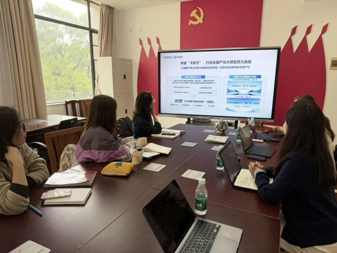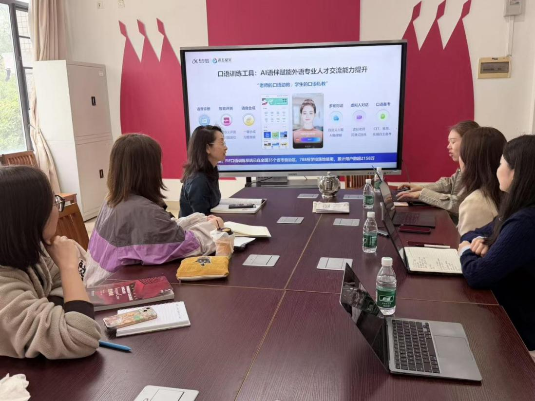 2025年12月19日上午,通用英语教学部领航大学英语智慧课程组召开AI赋能智慧课程建设研讨会。英语教育学院副院长李惠胤教授、范栩颖老师、汪晨老师与讯飞集团相关工作人员出席会议。双方围绕校级智慧课程建设进展进行了深入交流,旨在共同构建一门深度融合广外特色的全新综合英语智慧课程。