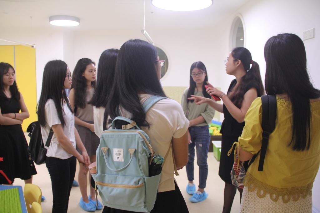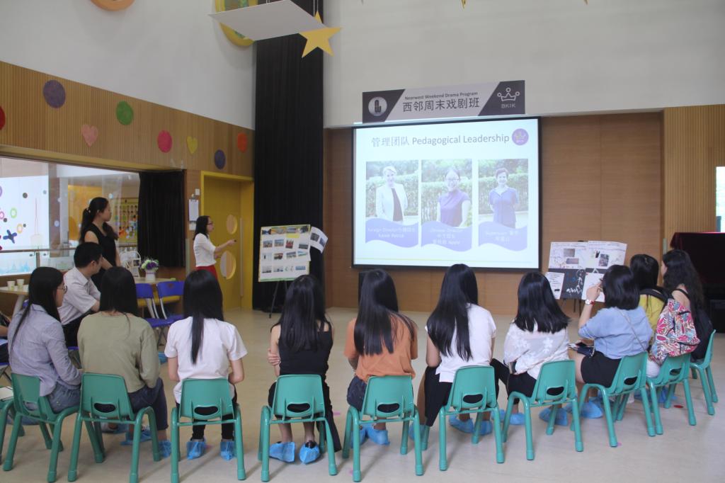 入园伊始,带队教师和英教学子就得到了园方管理层的热情接待。园长助理向学生们简要地介绍了中西方两位园长及参观流程。林泽龙则介绍了英教学院的概况和本次参观学生的基本情况。学生就幼儿园各方面的问题与西方园长Ms. Kassie进行了交流。