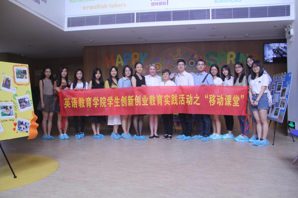 2017年5月26日上午,由党委副书记徐昶斌和学生辅导员林泽龙带队,十名英教学子参加了英语教育学院学生创新创业教育实践活动“移动课堂”。本次访校活动来到了本土化与先进国际教育理念有机融合的汇悦天启幼儿园。