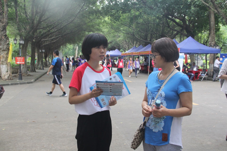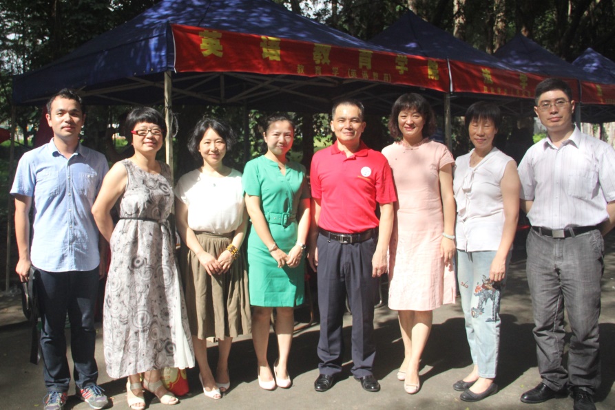 2017年6月25日,我校第十八届“大学开放日”在广东外语外贸大学北校区主干道隆重举行。英语教育学院院长董金伟,党委书记林绍雄,副院长吴岩,党委副书记徐昶斌,教育系系主任谢剑萍,教师周洁,周芳和黄蔷,学工办林泽龙来到现场摊位为考生及家长解答疑惑,帮助他们更好地了解英语教育学院。