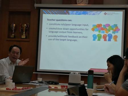 胡教授讲座汇报的他跟研究生新近所做的一项有关中国高校英语作为教学用语(EMI)的研究。胡教授指出从课堂话语角度研究EMI在国内是一个新兴领域,现有实证研究非常有限。接着胡教授论证了课堂话语实现教学目的的意义,继而从认知层次和语言层次两个维度对课堂转写的数据进行分析。最后,胡教授指出,从研究结果显示,大学EMI老师对不同提问方法的功能认识不深,对教学语言与提问策略如何影响师生互动模式了解较少,提议教师自身需要提高这方面的意识;另外,教师发展和培训也该加强这方面的工作。
