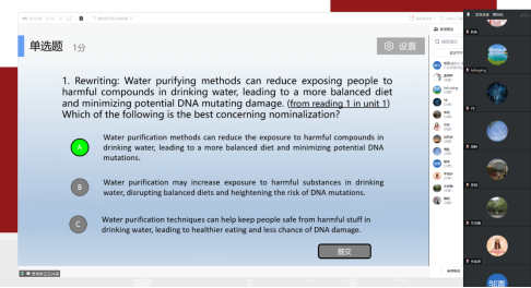 苏春老师分享了AI在教材编写和课堂互动中的实践经验。她提到,通过雨课堂的AI功能,教师能够高效收集作业与课堂反馈,进一步优化教学过程。同时,她也提醒教师在鼓励学生使用AI的同时,要保持评估与监督机制,确保学习的真实性与有效性。曹琳琳老师展示了自己在教学设计中利用AI工具进行文本修改与发布随堂练习的案例,展现了在技术应用上的创新与灵活性。李刚老师分享了使用Deepseek引导学生产出观点、改编例句的实操案例与课堂应用。周静老师介绍了自己使用AI工具辅助开发课堂活动、引导课堂互动、辅助教学总结的实践。邹青老师和李春琳老师探讨了利用AI工具促进学生语言学习、提高教学效率并生成个性化学习资源的体会,同时也指出学生一味依赖AI可能影响其批判性思维和创造性表达,教师应适当引导学生正确使用AI工具。