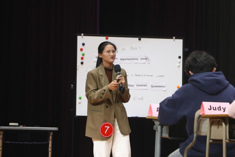 选手郑晓潼以《The boy in the mirror》为题展开教学,带领学生学习文章所蕴含的多元化思考和人物独特思想的特点。在教学中,她梳理文章脉络,提取重点,鼓励学生换位思考人物心理,将写作结构技能运用于实践,并积极对学生的发言给予反馈。整个教学层次清晰,目的明确,为学生树立了逻辑完整的结构意识,建立了丰富多元的价值理念。