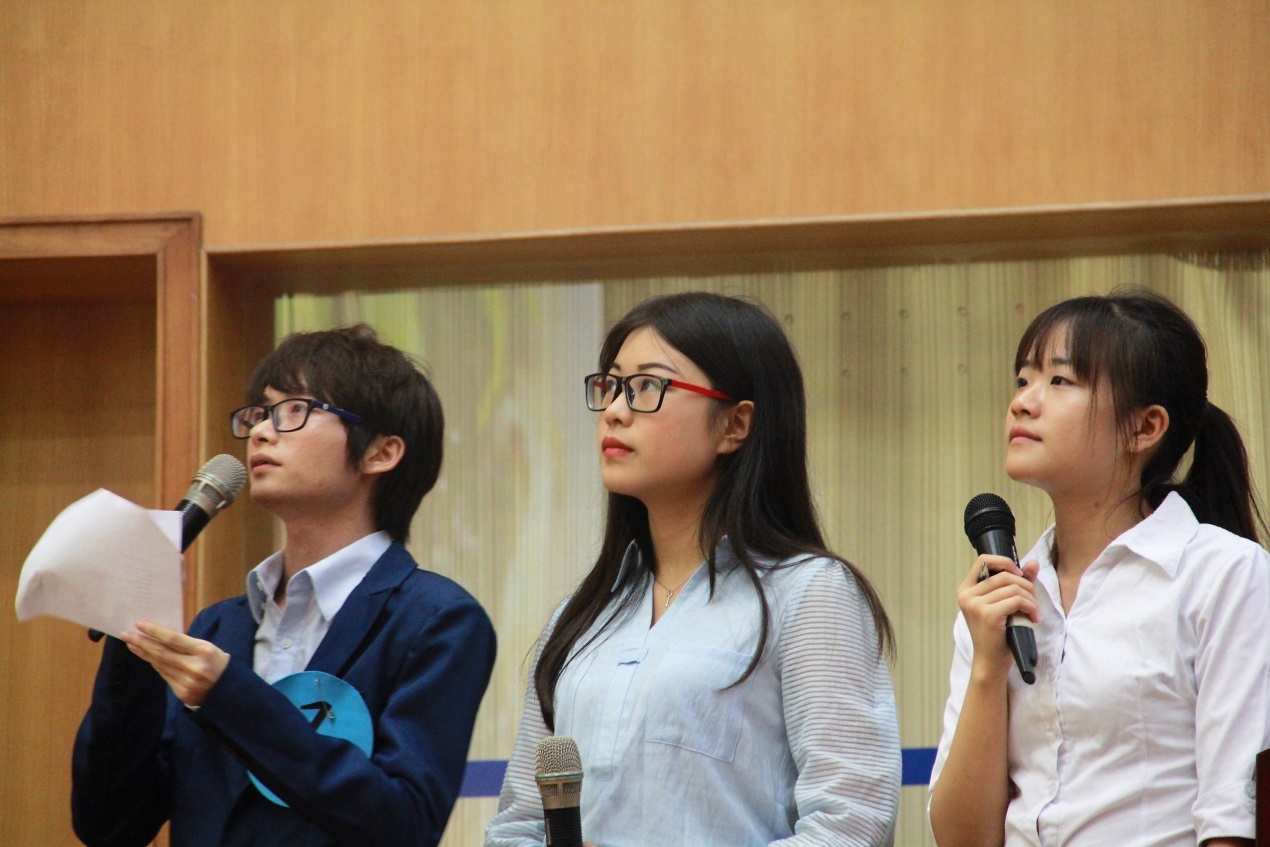 在比赛的第一轮中,每个小组都采用了适合自己的方式来进行展示,通过这个形式每个小组都充分展现出了他们的英语综合技能。“说什么都队”采用一个反转三次的关于愚人节的情景话剧,营造出幽默搞笑的环境气氛,因此赢得了台下观众热烈的掌声。更有别的小组采用配音的形式,为在场的评委和观众展现出出众的英语听说能力。