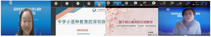 康叶钦博士的分享呈现了龙华区中学生的日语学习状况、学习动机和学习需求,指出龙华区的中小学校可借助区域优势开设多语种课程,引领基于课程标准的教学改革,高校-地方教研机构-中小学校应合力助推大、中、小学校多语种人才的一体化发展。深圳市教育科学研究院教研员陈燕老师分享了深圳市对中学小语种教育的探索。指出要继续强化教研、探索小语种教学新模式,助推深圳市小语种教育优质均衡发展。龙华区外国语学校小语种学科组长付陶然老师围绕“基于核心素养的日语教学”,分享了龙华区外国语学校日语课程在“文化意识”培养方面的课内外探索性实践,指出丰富的教学方法和手段增强了学生的语言文化意识。许贞副教授分享了大学的日语课程安排和学生体验活动,为探索多语种教育的一体化发展拓展了视野。吴岩教授致力于研究高校多语种教师的专业发展,她的分享启发了与会者对构建各学段多语种教师专业发展机制的思考。
