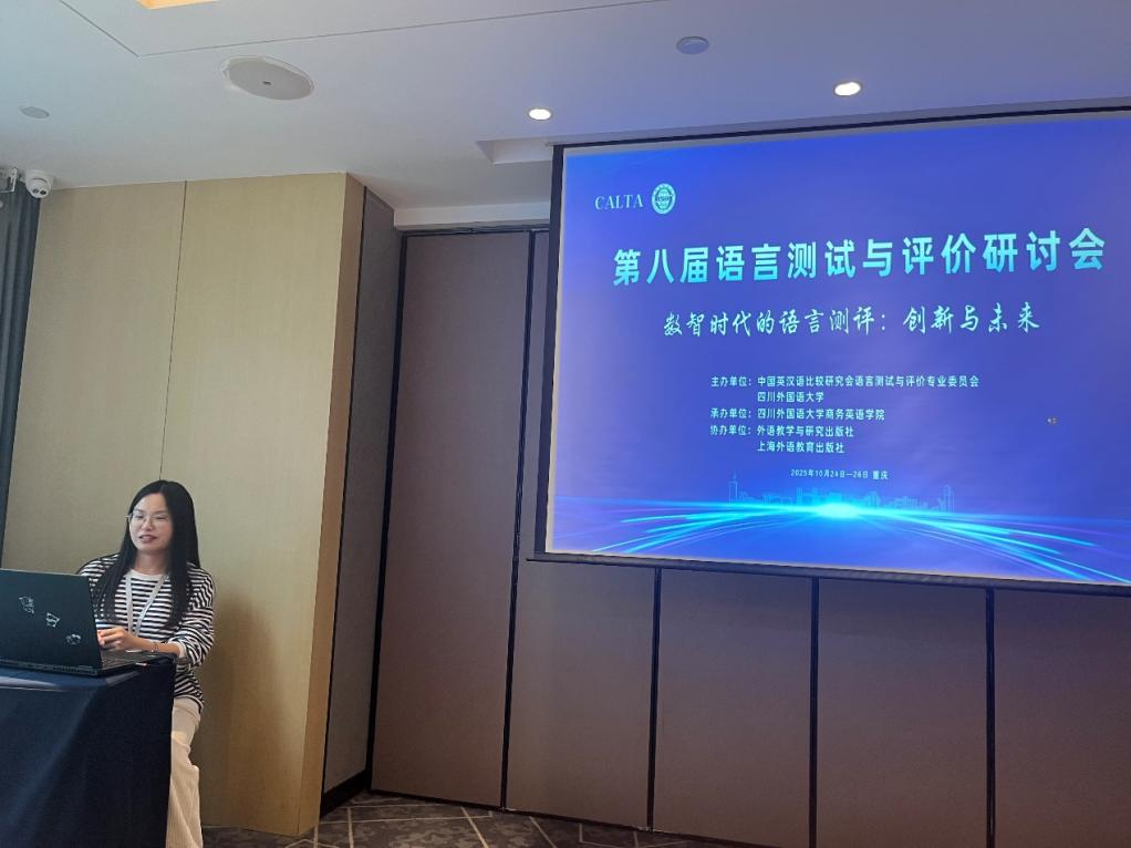 10月24日至26日,第八届语言测试与评价研讨会在山城重庆隆重举行。本届盛会吸引了全球近200位专家学者、教育工作者及硕博研究生齐聚一堂。我院教师曹琳琳、周艳琼老师应邀参会,与国内外同仁共同探讨数智时代语言测评的前沿趋势与创新实践。