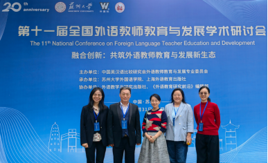 近日,由中国英汉语比较研究会外语教师教育与发展专业委员会主办、苏州大学外国语学院和上海外语教育出版社共同承办的“第十一届全国外语教师教育与发展学术研讨会”在苏州大学圆满召开。本次研讨会以“融合创新:共筑外语教师教育与发展新生态”为主题,吸引了来自英国、加拿大、奥地利、加纳、坦桑尼亚、阿尔及利亚、中国香港和澳门地区,以及全国各地的450余名高校教师、教育工作者、中小学教师和研究生齐聚百年学府。广东外语外贸大学英语教育学院六位教师受邀参会,包括副院长李惠胤教授,中国英汉语比较研究会外语教师教育与发展专业委员会常务理事董金伟教授,以及吕琳琼副教授、陈媛媛副教授、蔡竞副教授、黄辉博士四位小组发言人。