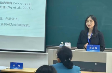 吕琳琼以“项目式学习促进职前外语教师AI素养与TPACK发展”为题作报告,探讨了以“AI赋能跨文化交际”为主题的项目式学习对职前教师发展的影响。研究通过实证分析指出,项目式学习重构了师生角色,推动教师向AI引导者转型,有效促进了学生AI素养与TPACK的协同发展。她强调,AI工具的应用不仅促进了师生关系的平等化,更深化了“技术赋能”与“守护人性”并重的教育理念,为外语教师教育提供了实践路径。