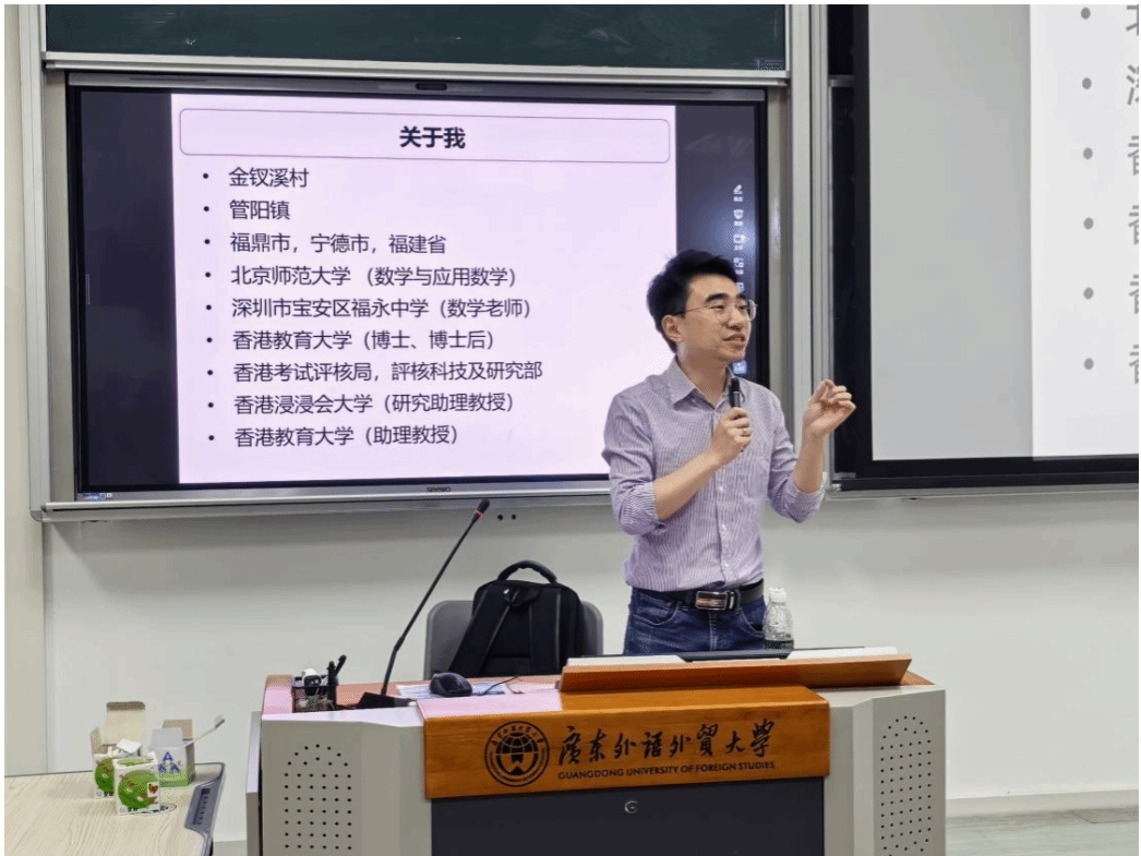 为引导学生把握人工智能时代教育发展趋势,提升自主学习与数字化素养,2026年4月9日晚7时,英语教育学院在大学城校区教学楼F208成功举办“人工智能时代的挑战与机遇:评价、反馈与自主学习”专题讲座。讲座特邀香港教育大学课程与教学系助理教授朱金鑫博士主讲,英语教育学院副院长李惠胤主持,学院研究生及本科生到场聆听。