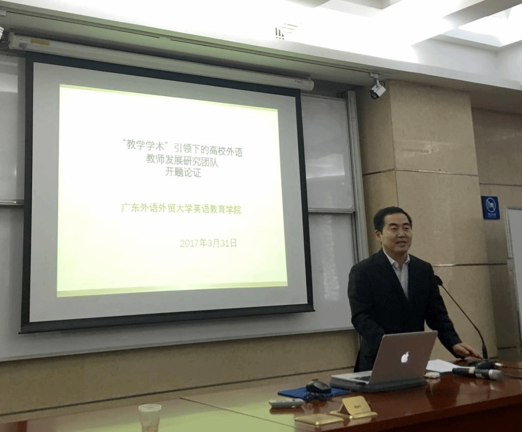 团队带头人权立宏教授从项目的研究背景、研究内容、研究方法、建设目标和管理措施等方面做了清晰与详尽的开题报告,并汇报了项目四个子课题的具体研究问题和研究计划,给出了详细的时间表和实施方案。该团队课题聚焦目前国内高校重研轻教和语言教育领域对教师自身专业发展的研究较为缺乏的现状,以“教学学术”作为研究理论基础和视角,探讨高校外语教师发展中的身份认同和构建、实践知识构建和文化生态模式等。