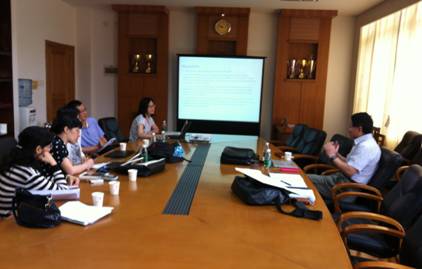 2015年5月15日上午,英语教育学院新聘的云山讲座学者冯安伟教授为英教学院的老师们举办了一场科研工作坊。参与工作坊的柯晓玲博士、李成团博士和王晓雯、李惠胤、龙艳等五位老师分别分享了自己目前从事的研究项目和课题,并就研究中出现的瓶颈问题和困惑向冯教授请教。工作坊原定11:30分结束,但是由于参与者非常珍惜这次难得的专家面对面“问诊把脉”的学习机会,工作坊最终延迟至12:30分才结束。作为国际知名的双语及多语教育研究专家,来自宁波诺丁汉大学教育学院的博导冯安伟教授就老师们的问题一一进行耐心的解答和权威的回应。与会者无不由衷地为冯教授渊博的学识、具有国际视野的学术高度以及精湛到位的点评折服,对冯教授的敬业精神表示感谢。