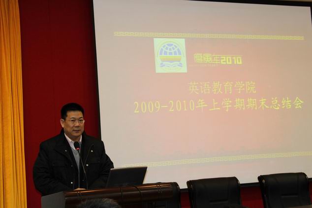 首先,仲伟合向大会致辞。他充分肯定了教育学院成立以来所取得的成绩,对一年来学院教工在大学英语教学中做出的努力表示感谢,同时也为学院今后的发展指明了方向。仲伟合强调指出,英语教育学院第一位的工作应始终围绕服务于全校的大局,重点抓好大学英语的教学工作。我校从2008年开始实行以分级教学、分层管理、分类指导为原则的大学英语教学改革,经过大家的努力尤其是教育学院老师的辛勤工作,现已取得初步成效,为学校培养国际化人才的目标奠定了坚实的基础。他进一步勉励教育学院一定要立足高远,锐意改革,积极创新,为学校建设国际化特色鲜明的高水平教学研究型大学做出更大贡献。