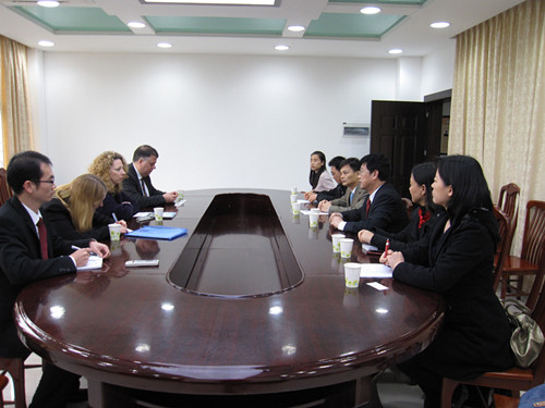 3月9日,英国西敏斯特大学副校长米斯卡·古兹科斯卡(Myszka Guzkowska),传媒、艺术和设计系主任查尔斯·布朗(Charles Brown),中国事务国际项目主管尼古拉·乔丹(Nicola Jordan)一行来访我院并在北校区院系楼会议室与领导、老师会谈。国际交流处副处长易宗勇、周鹏老师、我院院长霍海洪、副院长董金伟、吴岩、教育系主任柯晓玲、教育系教师代表张忆、外事协调员王晓雯参与会谈。院长霍海洪首先向来宾详细介绍了我院的情况,阐述了英语教育系的教学理念。参会领导和教师代表与外宾就2+2本科生合作项目的培养过程、课程设置及教师短期的培训项目的更一步合作展开深入交谈,提出很多建设性意见。