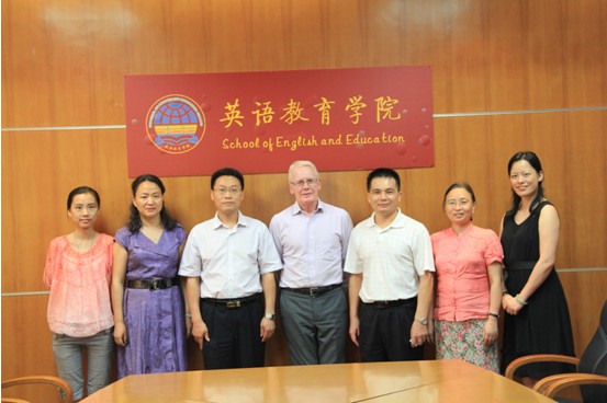 2012年9月5日下午,迪肯大学教育学院副院长、博士生导师Ian Robottom来访我院,并在南校区院系楼245会议室与我院领导、老师会晤。英语教育学院书记林少雄、副院长董金伟、吴岩、教育系主任柯晓玲、迪肯项目任课老师吴霞辉以及外事协调员王晓雯老师出席了这一活动,吴岩副院长主持会议。双方就广外大-迪肯大学双学位学士项目、英语教育硕士项目的合作深入交换了意见,并落实了项目学生赴国外学习和毕业回国的具体时间安排。双方的会谈卓有成效,Ian Robottom教授还带来了对项目学生而言相当优惠的两个好消息:第一,2012年第四期新招收的学员将获得每人3000澳元的奖学金。第二,广外大-迪肯大学硕士项目毕业的学生,继续在迪肯大学攻读博士学位,将免除全部博士学习阶段的学费(即免除金额约为36万人民币的博士学费)。