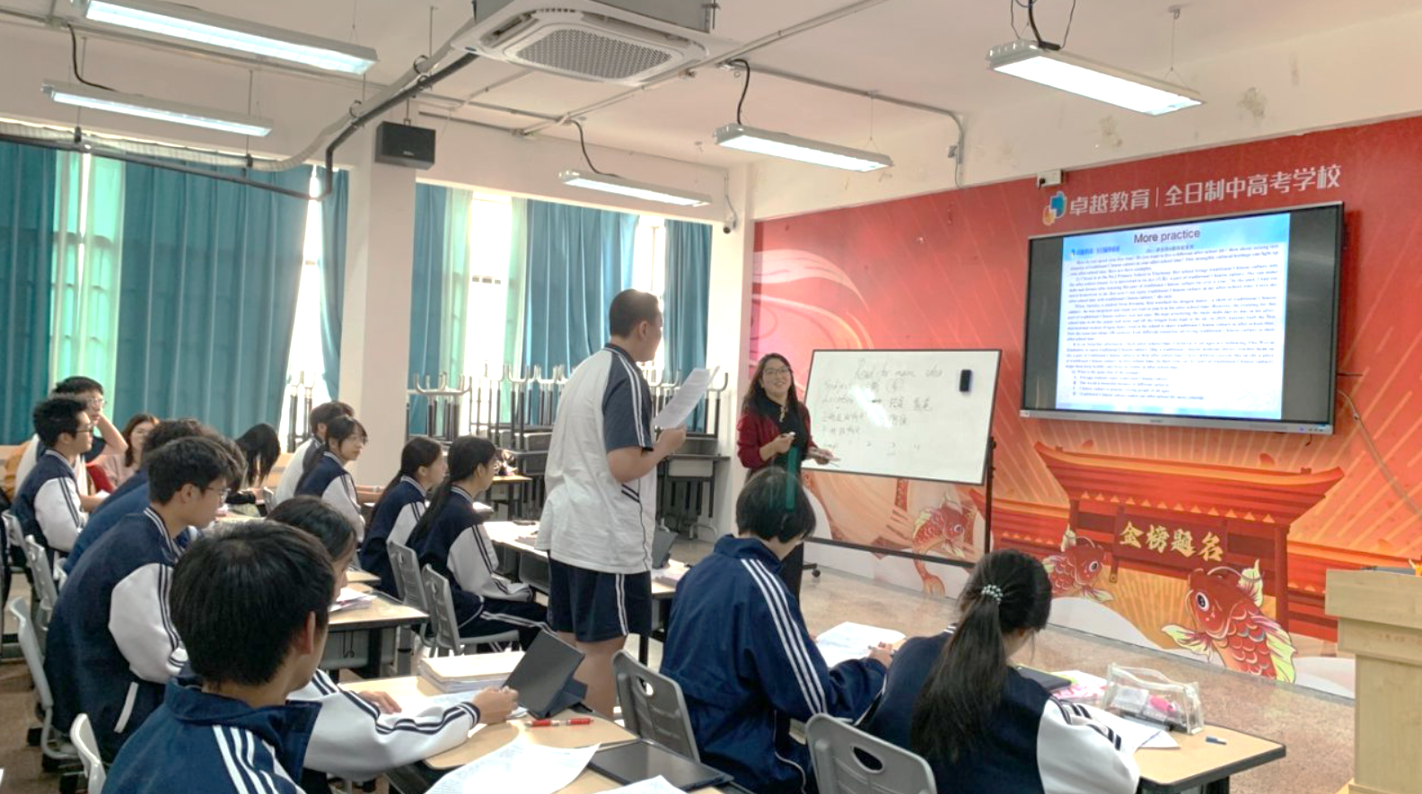 为推动教师AI素养提升,探讨教学创新路径,以高质量党建引领高校事业高质量发展,英语师范系教师党支部于12月6日携手广州市名教师刘敏莉工作室、卓越教育全日制事业部在卓越教育集团(天河校区)联合开展“党建引领促融合,AI赋能研教学”主题党建教研活动。英语教育学院党委书记骆银花,师范系教师党支部书记贾红霞,师范系主任谢剑萍,教师教育与发展研究中心主任吕琳琼,师范系教师党支部委员齐湘燕、刘洋,研究生党支部书记吴世傲、学院组织员周靖凯、师范系学生党支部代表钟文卿、潘婉莉,与刘敏莉老师及其工作室成员,卓越教育集团副总裁黄小红,卓越全日制事业部相关教师党员共同参与此次活动。本次活动分为课例展示、AI赋能案例分享和点评交流三个环节。