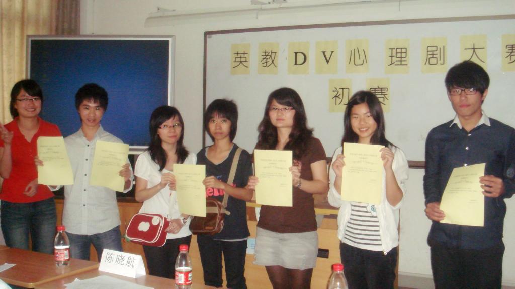 4月1日下午2时,由英语教育学院党建协调活动小组主办、学院心理援助队协办的第三届“爱满英教,情溢校园”DV心理剧大赛初赛在教学楼E207举行。本次大赛旨在构建和谐的宿舍文化、引导大学生形成健康生活习惯和提高大学生的心理素质。