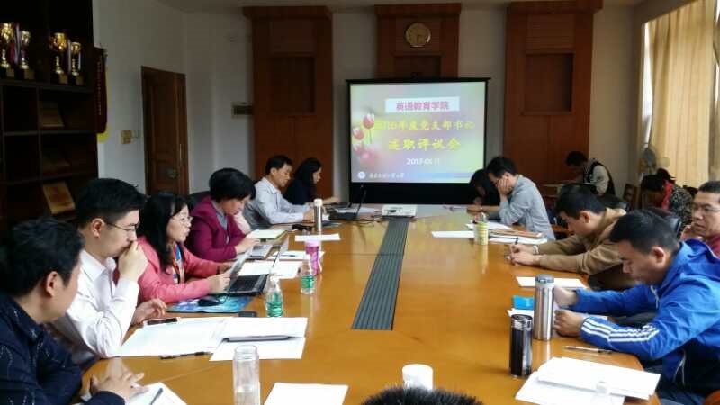 1月11日下午,英语教育学院党委于南校区院系楼245会议室召开了学院教工党支部书记述职报告会。学院党政领导、全体党支部委员参加了会议。会议由学院党委书记林绍雄主持。