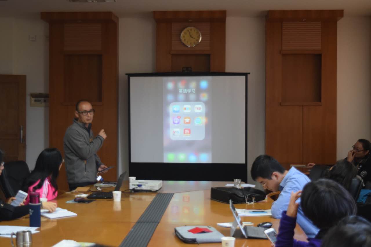 教育系党员崔华老师做了“Useful apps for learning andresearching”的主题讲座。他从苹果手机和转换器方面列举了一些提高教师教学和科研有用的软件,包括如何更有效地使用百度网盘,如何编辑PPT,如何充分利用keynote、ibooks、icloud以及手机知网、caj云阅读软件的特殊功能,更好地为教学科研服务等。这些分享让众多老师受益匪浅,同时大家也表示会后要多交流,多研究,资源共享,不断增强党组织助力教学和科研发展的功能,密切党组织活动与党员专业发展之间的关系。