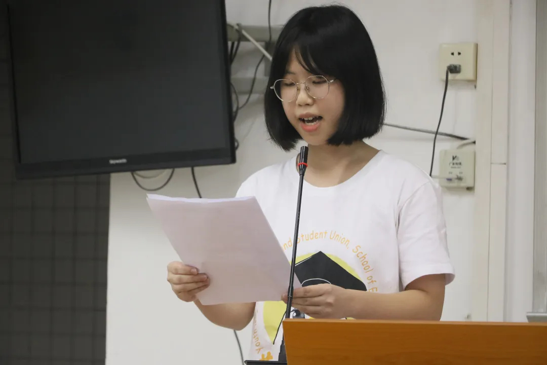 执行主席何韵妍详细介绍了团学的组织架构与各部门职能。她对新成员的加入表示欢迎,并勉励大家不忘初心,砥砺前行,期望新一届团学在全体工作人员的共同努力下更加出彩。
