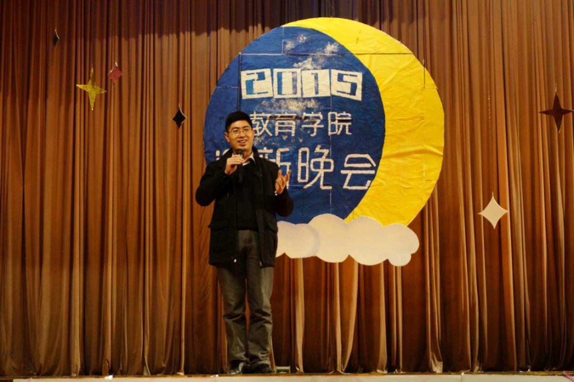 主持人做完开场宣言之后,新任党委副书记徐昶斌受主持人之邀上台发言。徐书记一声“小伙伴们,晚上好!”的亲切问候捕获了现场每一个英教学子的心,而徐书记接下来的谈话更是为英教学子带来了冬日里的温暖。徐书记表示,英教学子,特别是14级的同学要好好努力,加强锻炼,使其大学四年每一天都可以充实而活力四射。