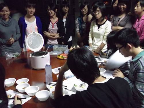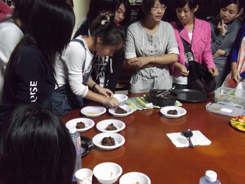 11月19日19时15分,,广外第二届“金勺奖”大赛英语教育学院院内赛在博雅园二楼拉开帷幕。担任本次比赛的评委是:英语教育学院团学副主席陈康博,英语教育学院生活部副部长骆颖,政治与公共管理学院生活部部长钟晓君,思科信息学院生活部部长李旭鹏。总共有七组选手参加本次大赛,一展厨艺。