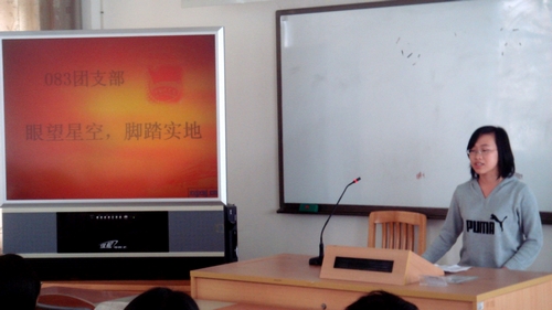 4月8日,广外英语教育学院红旗团支部评选大会在教学楼E207隆重召开,07、08级各支部均派团支书等学生代表来到现场。组织部部长虞婷、组织部副部长马少珠等也出席大会担任评委。会上,各支部尽出法宝,力求在最短的时间内展现最亮眼的班级特色,历时两小时的大会被各支部的幸福所包围。
