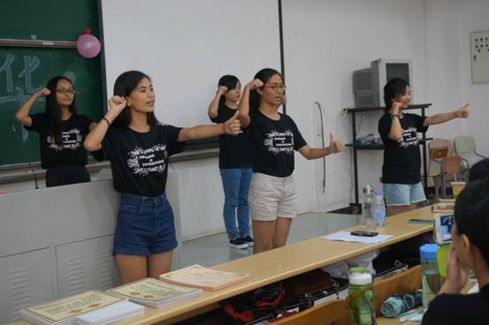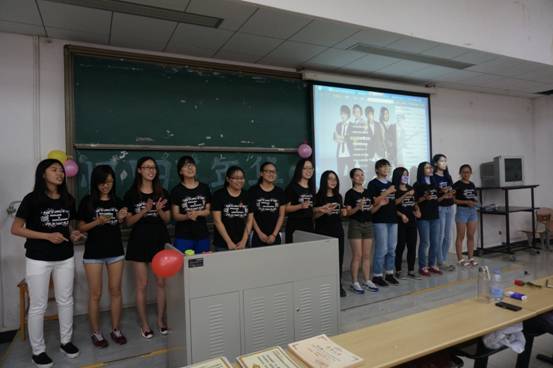 下午2:00,会议在副主席陈勉如的主持下拉开帷幕,她先是从自己过去一年的工作感想以及与团学成员的相处点滴入手,勾起在场或即将离任或即将留任的团学成员对自己以往工作的点滴回忆。接着,她介绍了会议的主要流程,分别是:部长感想、干事表演、神秘环节、颁发聘书以及大合照。