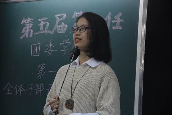 随后实践部部长冯培华、宣传部部长刘雁珊从不同的角度分享了自身的经验、教训,亦对新干事们提出了建议和要求。她们均表示希望每一个人都能珍惜在团学工作的机会,勤于学习借鉴、善于反思总结,共同为这个大家庭的建设添砖加瓦。其中,刘雁珊寄语:“欲戴皇冠,必承其重。”激励全体新干事们勇于付出、勇于承担。二人饱含深情的话语,无不体现了对团学的留恋和怀念,对新干事们的肯定和期盼。