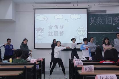 接下来,各部门干事使出浑身解数,使现场气氛活跃起来,观众爆笑连连。就服部与宣传部通过歌舞串烧的方式,让我们感受到干事们的活力与朝气,他们用动听的旋律和优美的舞姿,一展风采。文娱部与生活部表演方式新颖,紧跟时代潮流,温馨与动感完美结合。体育部、组织部及学术部带来的歌曲串烧旋律优美,深情动人,让人陶醉。秘书部与实践部带来可爱的舞蹈,更与干事们进行互动,现场笑声不断。新闻部与外联部的节目,神曲与表情包相结合,更是让人印象深刻。