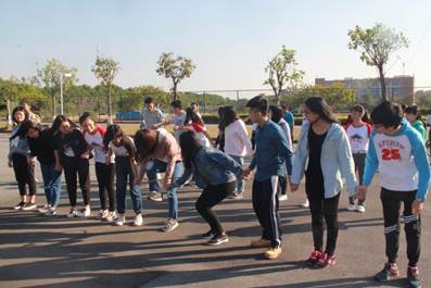 然后,所有团学成员合影留念,但活动尚未结束,团学成员们分好小组,齐聚羽毛球场前,准备大展拳脚,进行接下来的趣味运动会。