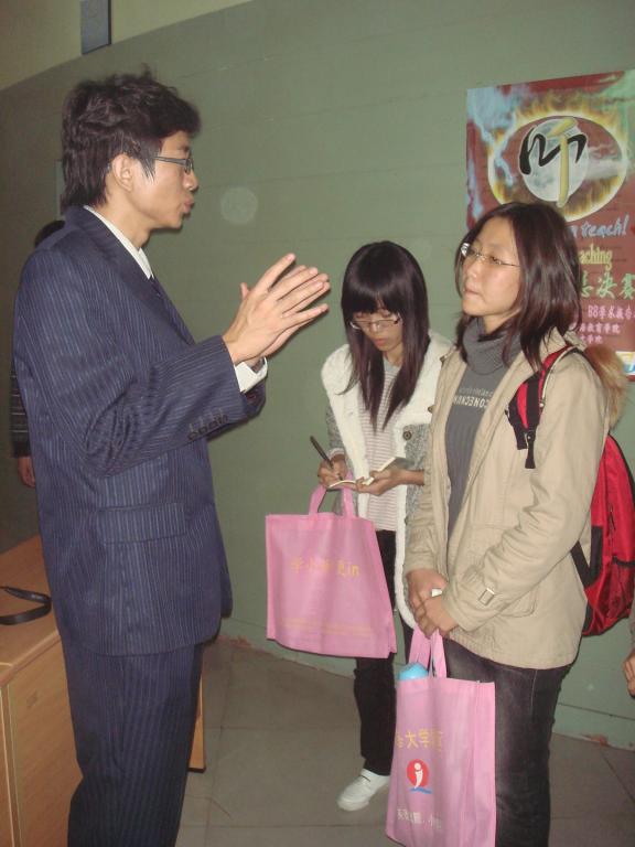 本届比赛与华师联合举办,我们在比赛前后专访了华师的选手们。他们纷纷表示想通过这样的活动与广外的学生相互学习,积累经验,同时在每场比赛完后,评委老师有针对性的点评确实给自己的进步带来了很多帮助。获得魅力教师奖的林跃告诉我们记者:“其实我不注重结果是什么样,更重要的是,在过程中我学到了很多东西。毕竟我们都是相同的专业,通过这样的合作,我们相互吸取了经验,各自得到了好处,也认识了更多的朋友。希望在以后的工作当中,这样的学习交流合作还能够继续,我也祝愿广外英教学院与华师外文学院在下一年取得更好的合作!”