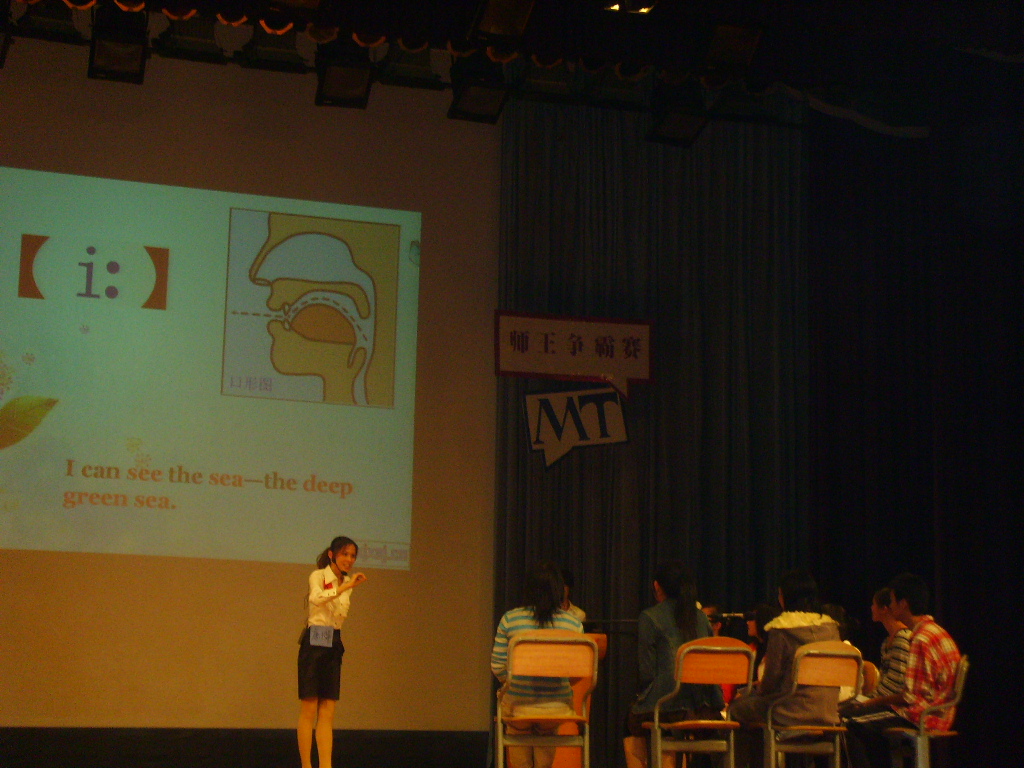 4&5是8支队伍当中唯一不用多媒体的组,两位女老师巧用学生周边的物品和空间来解释方位动词;另一个华师队T.H qualified则以较传统朴实的风格出现在观众面前,简笔画教学技巧的利用更是获得评委老师的好评;与其他7组选手截然不同,Legend进行音标教学,吸引人的地方是,老师们根据音标的发音配上了相应的手势,让枯燥的语音课也变得生动起来。