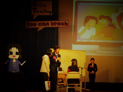 本次大赛的一大亮点体现在教学元素的多元化。自第三届冠军队Transformer把自拍视频搬上课堂赢得满堂喝彩后,今年的很多支队伍都沿用这种video教学法,生动活泼。音乐、游戏、对话、role play等也为各选手运用得淋漓尽致。精美道具吸引学生眼球,卡通人物哆啦A梦、侦探英雄柯南,福尔摩斯跃然课堂间,不仅给学生学习带来新乐趣,也让台下观众饱览一场视觉盛宴。