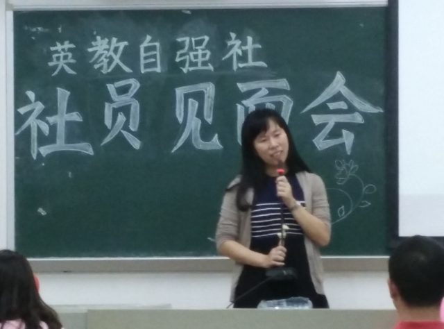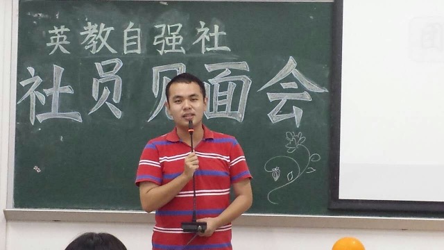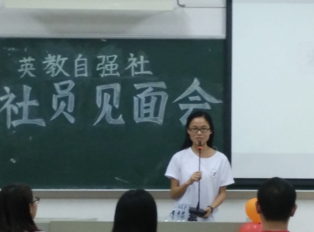 英语教育学院团委书记林泽龙以亲切的致辞来拉开了本场活动的序幕,他在致辞中表扬了英教自强社干部干事们认真,负责的工作态度,同时也与参加本次见面会的同学们分享了他所了解到英教自强社的从无到有的白手起家的历程。同时,他也希望英教自强社能够继续将良好的工作口碑传承下去,也送上了对英教自强社的诚挚祝福。