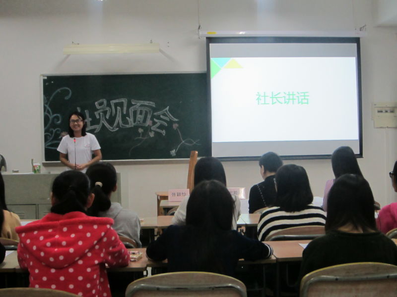 本次见面会很荣幸邀请到了自强社的指导老师迟殿凤老师,出席的嘉宾还有英教自强社社长张颖怡及副社长余两蕾,参加本次见面会的主要是英教学院自强社社员们。