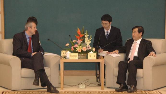 图为陈文辉校友担任甘新副市长会见APM码头公司亚太区总裁纪奕信的翻译