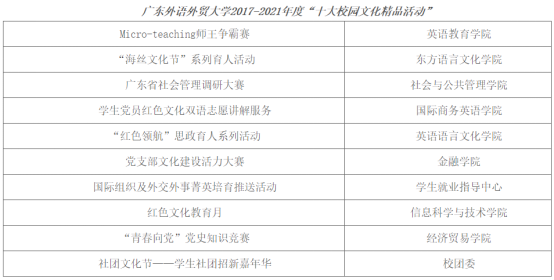 广外2017-2021年度“十大校园文化活动精品”榜单