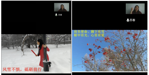 因为疫情原因,苏春目前仍然滞留在俄罗斯。她以“使命、热爱和奉献——我在俄罗斯教中文”为题,向师生们分享了她在俄罗斯两年多的工作和生活及其感悟。作为一名孔子学院汉语教师,她勇担文化使者使命,承担了繁重的教学任务,日常需要横跨四个校区,教授7门课程,每周上20节课,涉及200余名学生。苏春多才多艺,热爱中国文化,她将中国歌舞、传统乐器、乐曲、诗歌、美食等融入教学,让学生在鲜活的中国文化氛围中轻松愉快地学习汉语。她在俄罗斯期间善于发挥英语教育的专业优势,乌拉尔最大最古老的白桦林图书馆、海豚语言学校和博物馆都留下了她通过英语积极宣传和推广中国文化的身影。苏春说:“作为一名大学教师,中共党员,我要树立好教师形象和党员形象,传播好中国文化。”正是在这种信念的指引下,面对种种难以想象的困难和挑战,她始终无惧风雪,砥砺前行,带着一份热爱,全情投入本职工作。她在俄罗斯期间取得的丰硕成果,也正是“若非一番寒入骨,哪得梅花扑鼻香?”的真实写照。